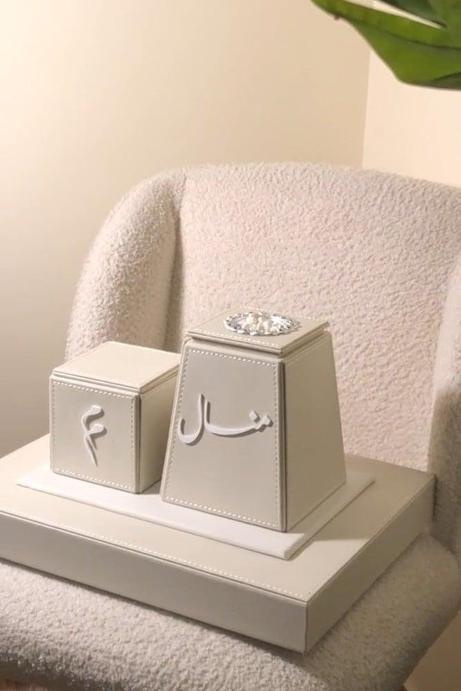 طقم مبخرة أنيقتفاصيل المنتج• طقم مبخره جلد بالاسم• يتكون من مبخره وعلبه العود وصينيه• الاسم حسب الطلبالشحن والتوصيل• خدمات شحن وتوصيل الى جميع مدن المملكه