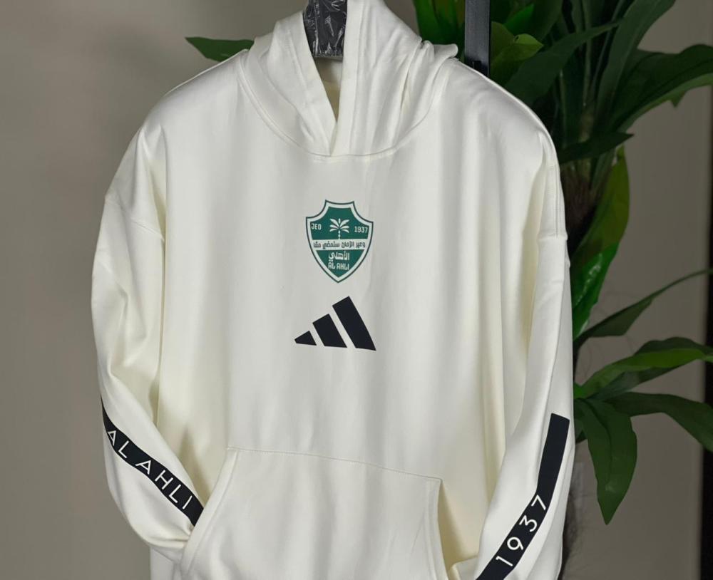 استمتع بأفضل تصميمات بلوفر الأهلي الجديد! مصنوع من قطن عالي الجودة، يضمن لك الراحة والمظهر الأنيق، مع مقاومة للتلف أو تغير اللون مع الغسيل