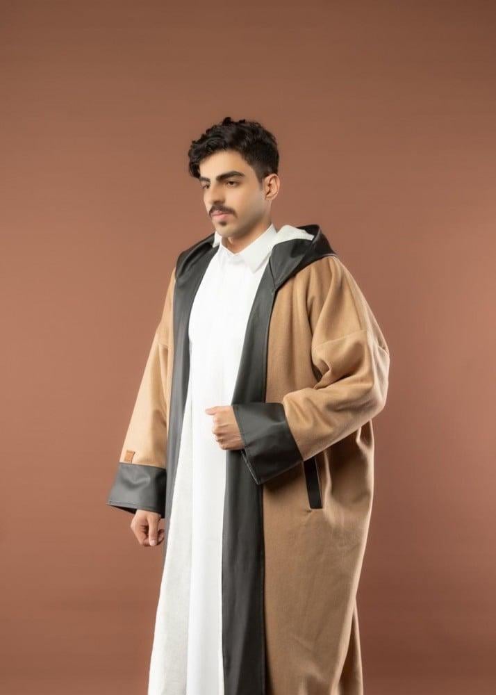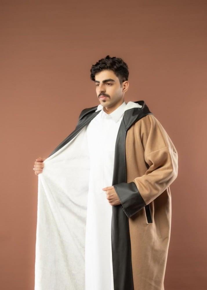 فروة رجاليةمصنوعة من قماش الجوخ الفاخر لون بيجوجلد على الاطرافومن الداخل فرو الارنب الناعم الصناعي لون ابيضالتفصيل لجميع المقاسات