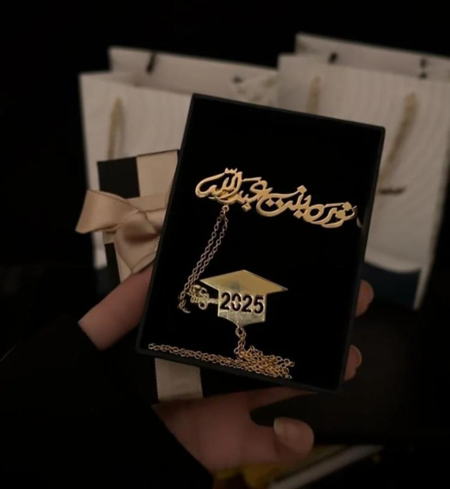 بروش تخرج انيق يصمم حسب الطلبمطلي بالذهب عيار 21 قيراط.• يمكنك تخصيص أي اسم ( عربي أو إنجليزي).متوفر طلاء ذهبي أو فضي• ضمان اللونسمك 0.7 مم. مع تغليف خاص من متجر احساس