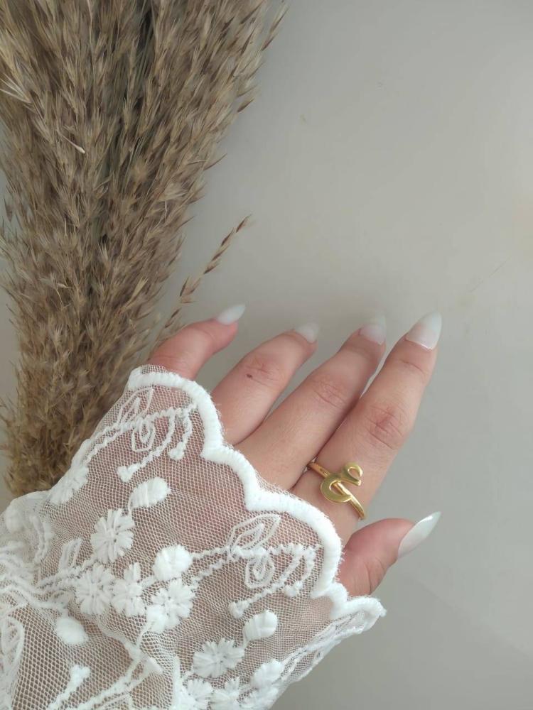 خاتم الاناقة والجمال بين يديكخاتم ناعم بالحرف الجميل0.1 مطلي بالذهب عيار 212. مصنوع من الفضة المطلية3. تصميم بالحرف العربي أو الإنجليزي حسب طلبك4. ضمان ثبات اللون5. المقاسات فري سايز سهل التحكم فيه